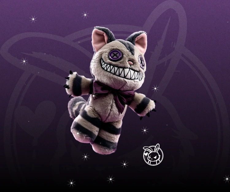 An immersive, attention-grabbing hero image with dark, thematic elements immediately displays the plushies front and center and transports the viewer in their universe.
